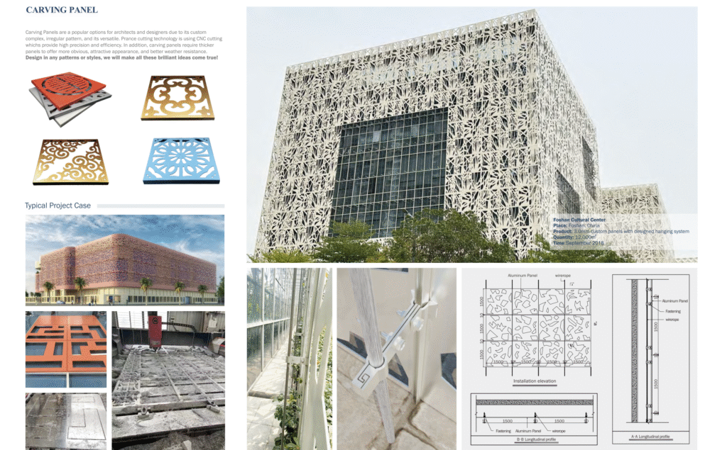 Lightweight, strong, and corrosion-resistant, aluminium façades provide excellent durability and design flexibility. They are available in various finishes—powder-coated, anodized, or textured—and are widely used in high-rise buildings, shopping malls, and industrial structures for both performance and style.
