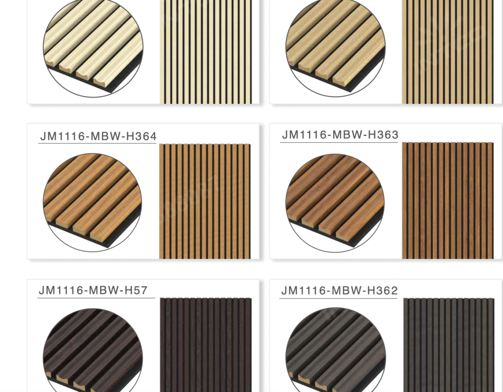 MDF Panels – Medium-density fiberboard, versatile, smooth, and cost-effective for decorative or acoustic use.